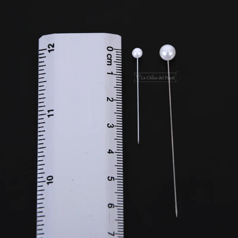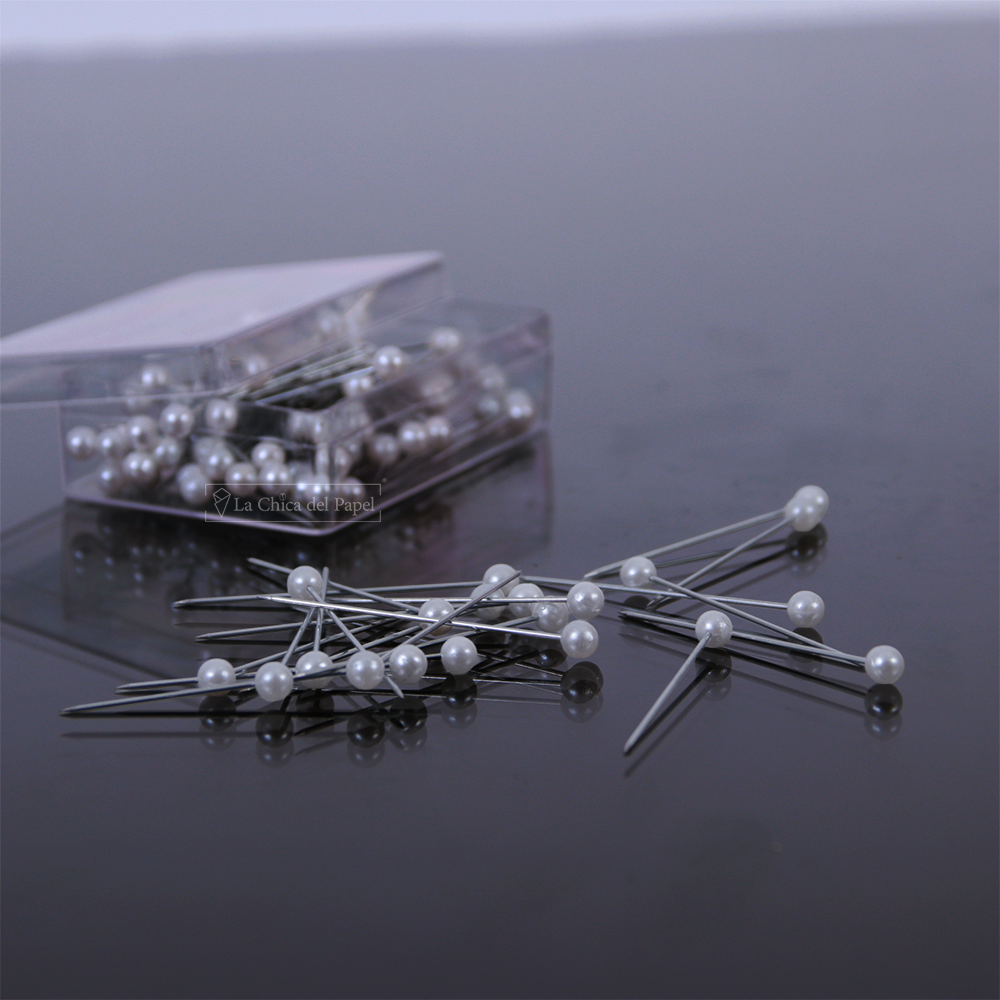 - Caj-100 CH: Contiene 100 piezas, de alfileres chicos, miden: 3.7 cm de largo y 0.3 cm de diámetro
