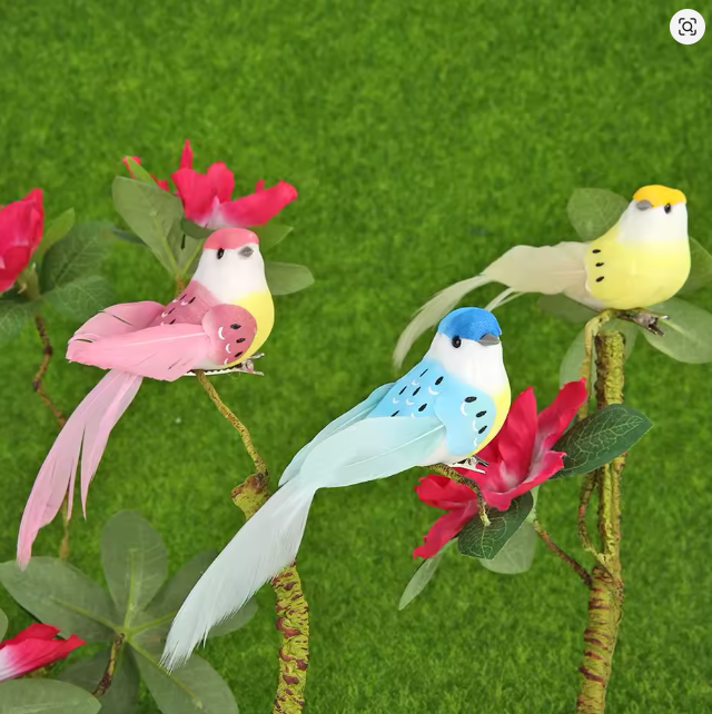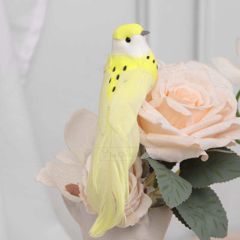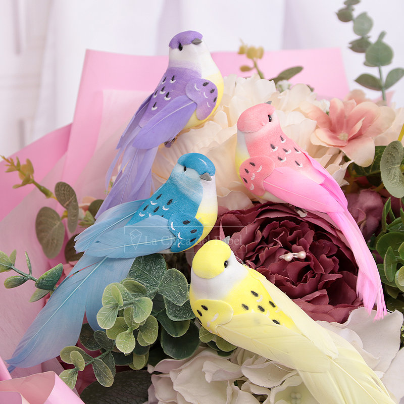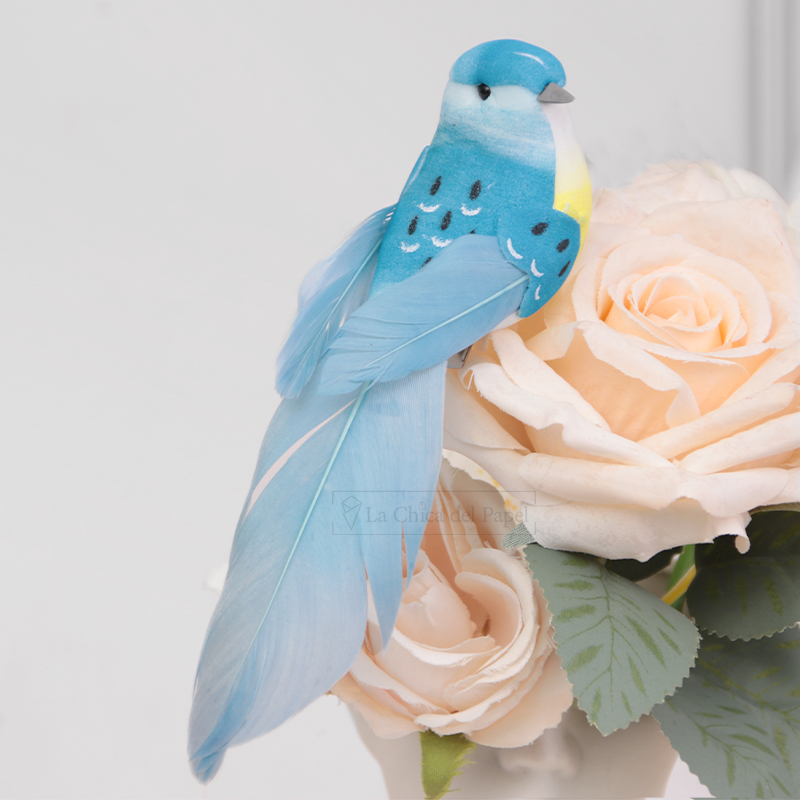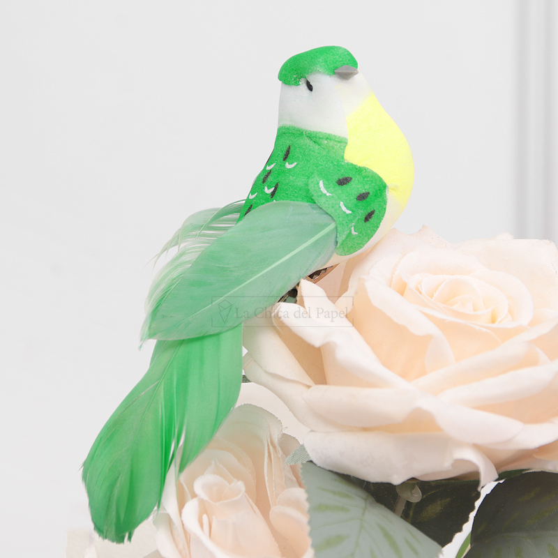 - Pajaritos decorativos de colores para ramos de flores o regalos.