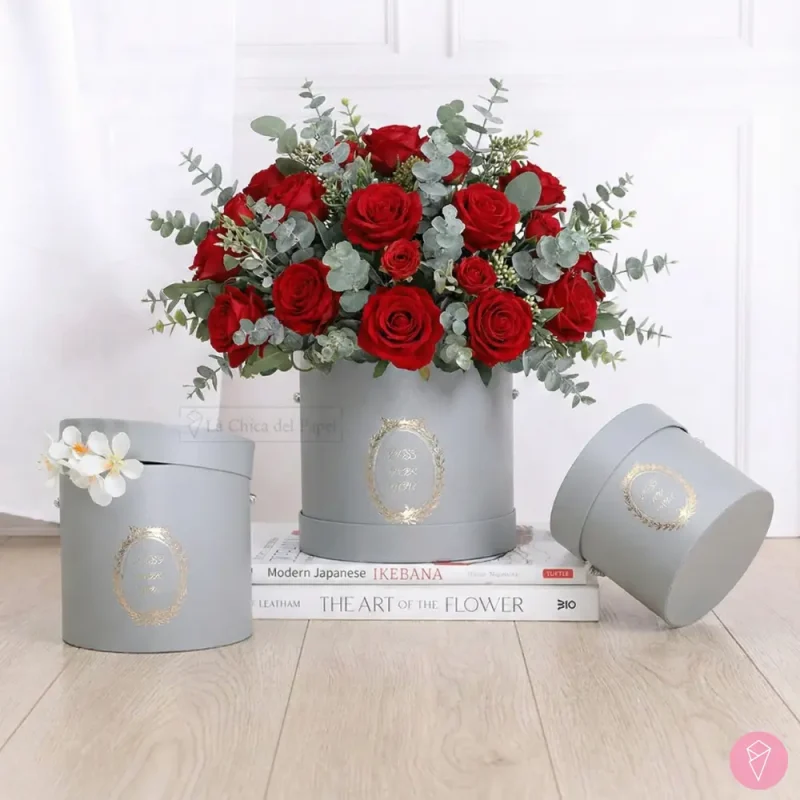 - Set de 3 cajas en forma de cilindro especial para flores o regalos