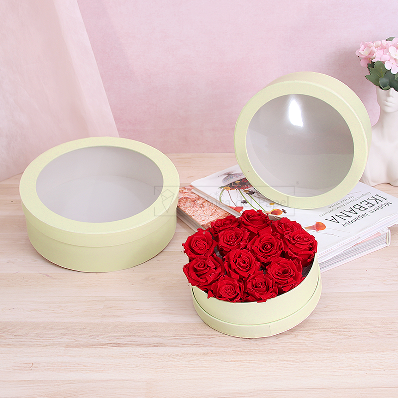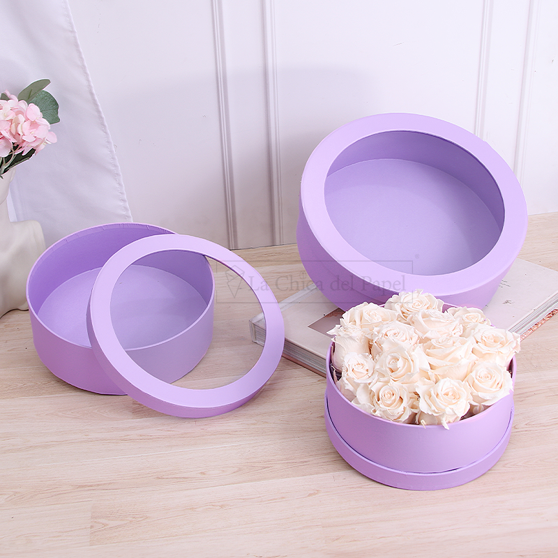 - Set de 3 cajas estampadas rígidas en forma de cilindro con tapa de acrílico