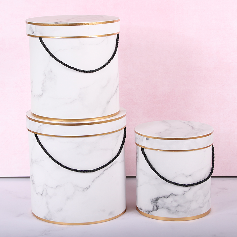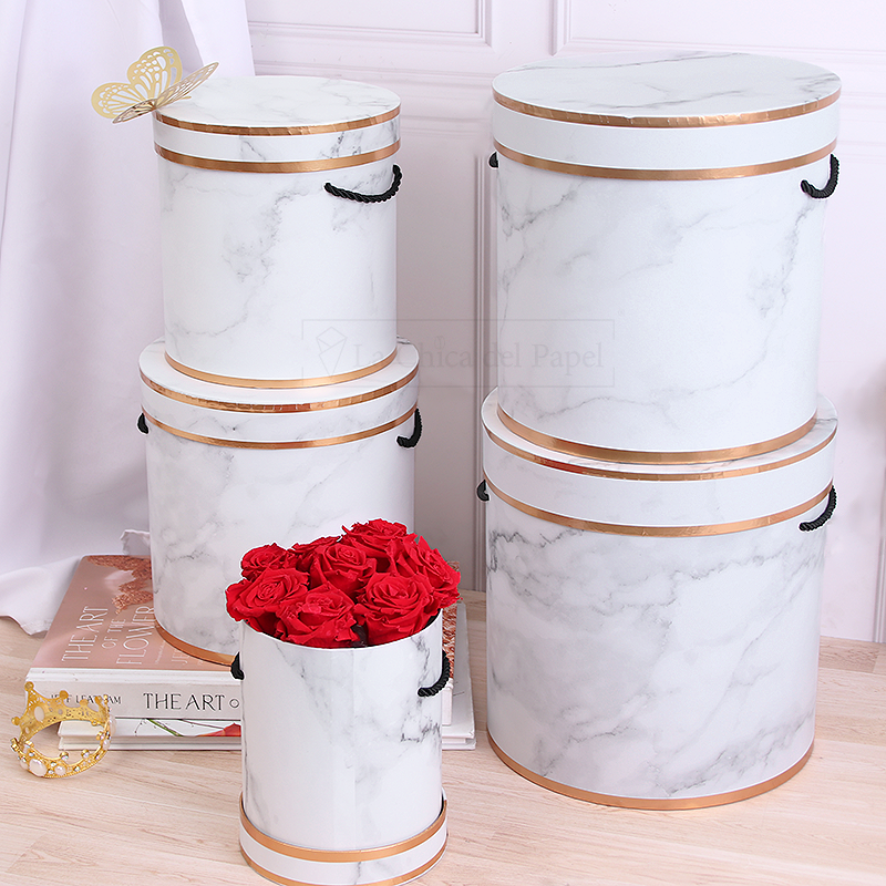 - Set de 5 cajas de cartón rígido estampado mármol.