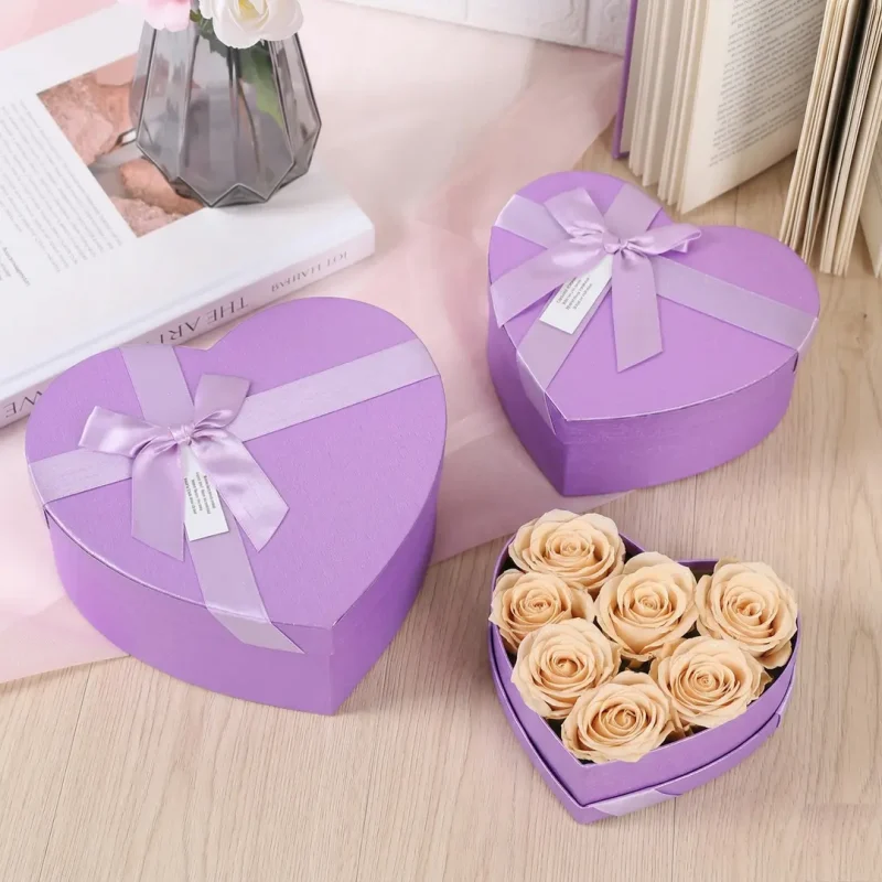 SET DE 3 CAJAS EN FORMA DE CORAZÓN CON MOÑO