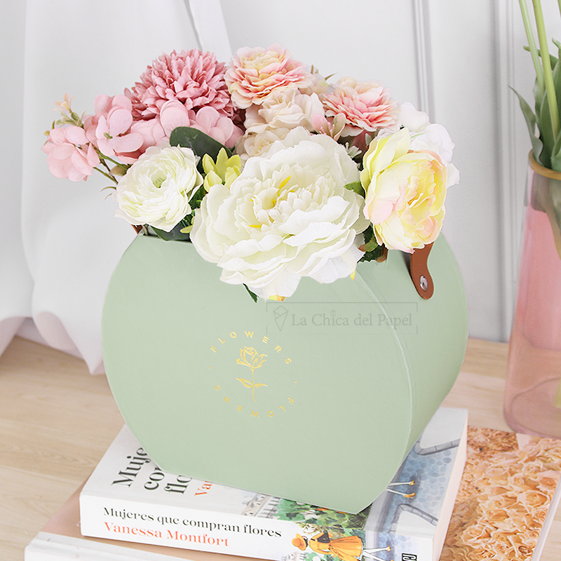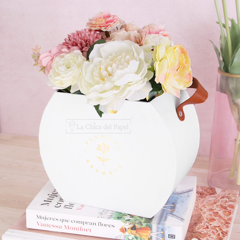 Esta caja tipo canasta es ideal para arreglos de flores o para usar como bolsa de regalo.