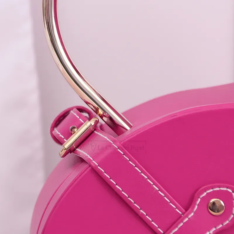 Acabados de lujo, con remaches de metal en color oro, forro de vinil apariencia cuero, e interior satinado.
