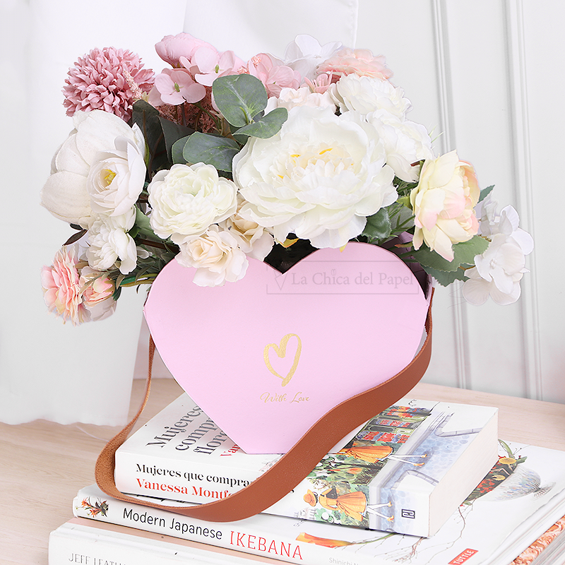 Esta caja tipo canasta es ideal para arreglos de flores o para usar como bolsa de regalo.