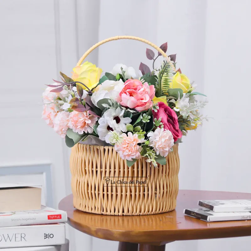 CANASTA TEJIDA PREMIUM ESTILO COREANO PARA FLORES