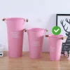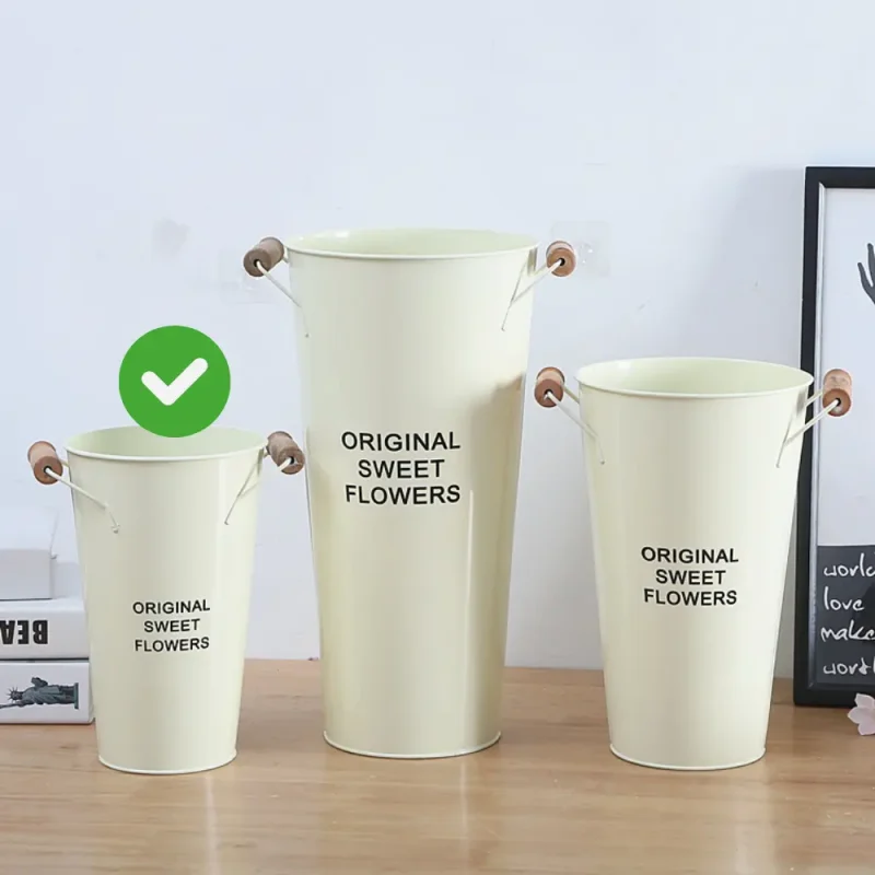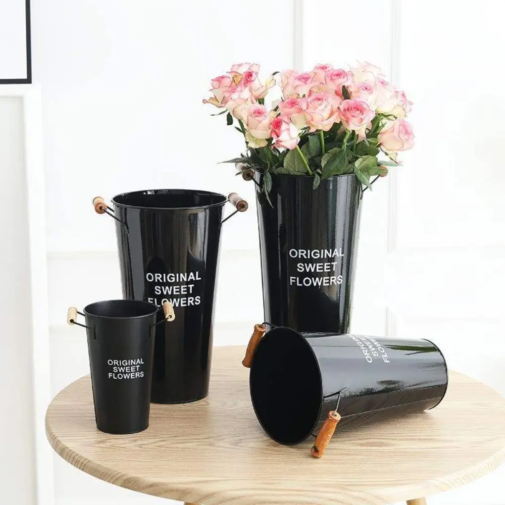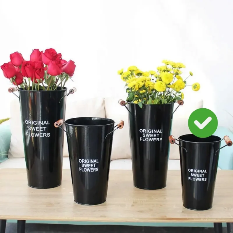 Hermoso florero de latón chico de 25 cm Con agarraderas de madera.