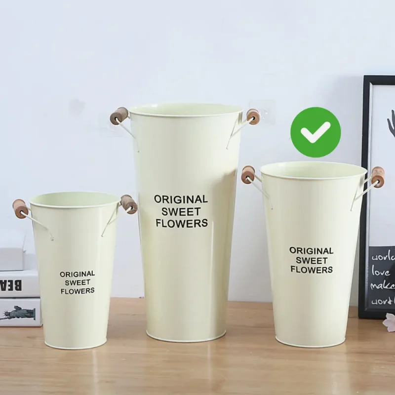 Hermoso florero de latón mediano de 30 cm Con agarraderas de madera.