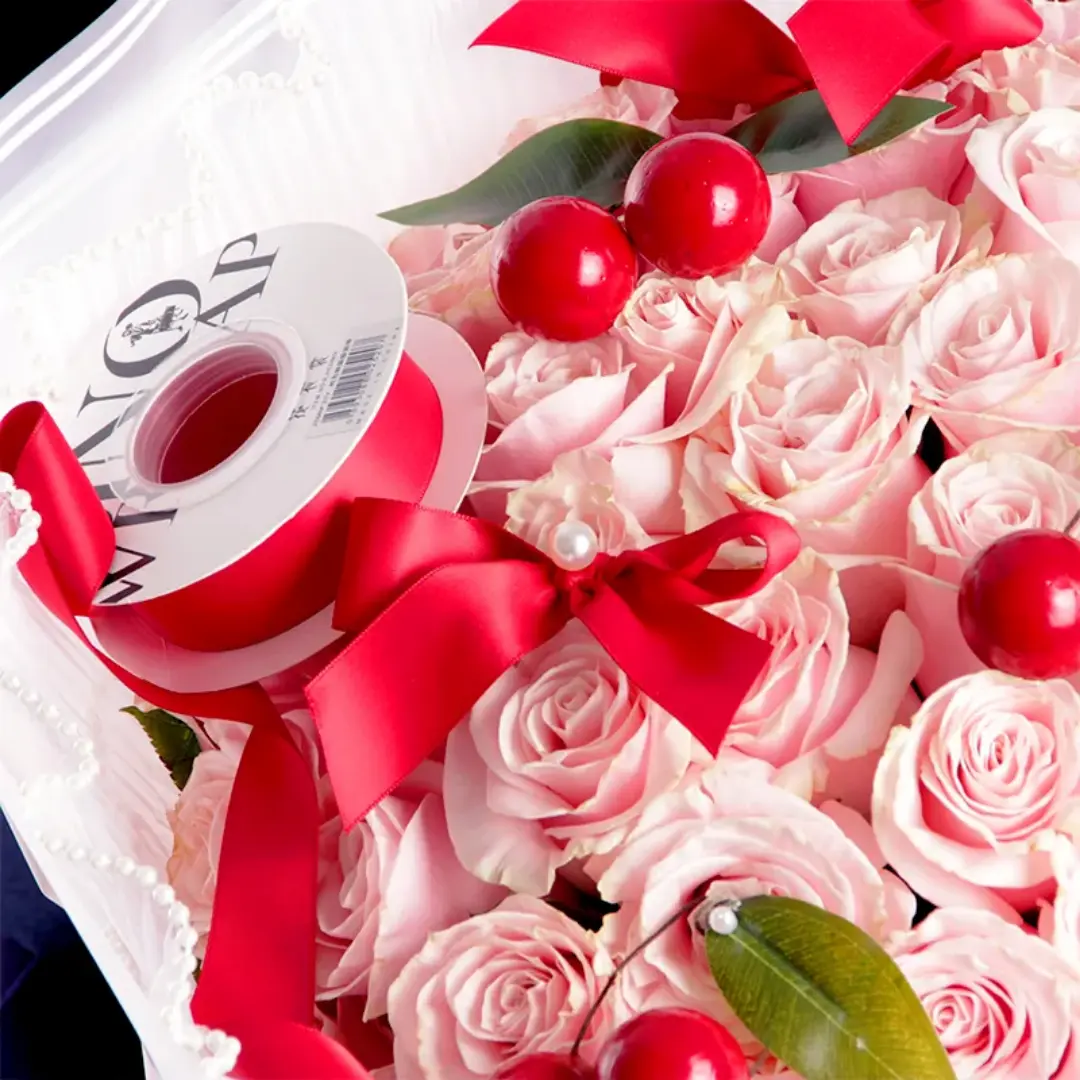 - Listón semi satinado, el listón más suave que podrás tener para tus arreglos florales, tiene apenas un pequeño reflejo se satín es semi matizado. Un listón increiblemente suave.