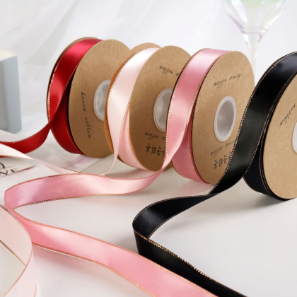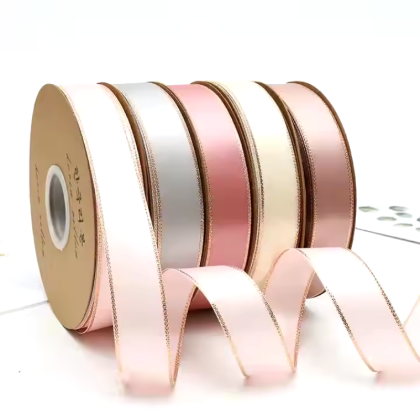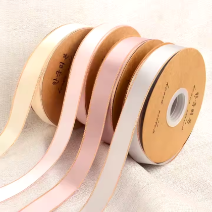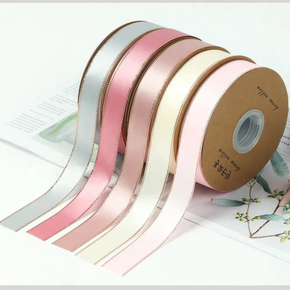 - Rollo de listón de satín con orilla marcada con brillos.