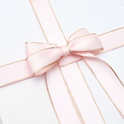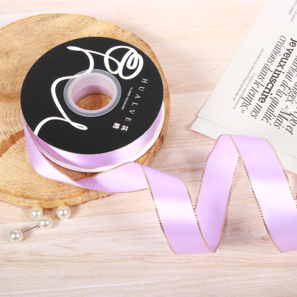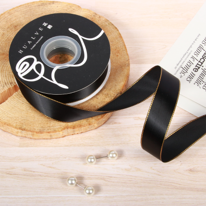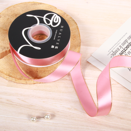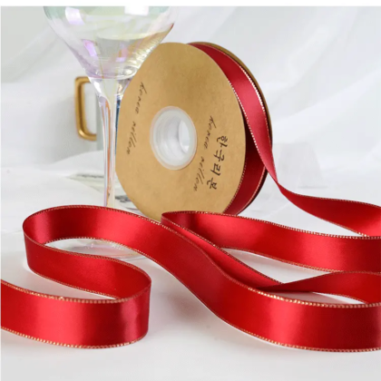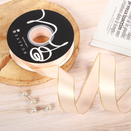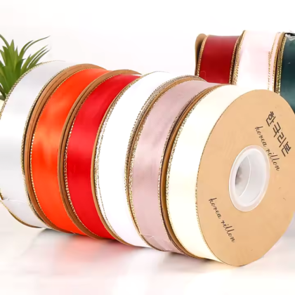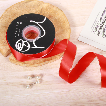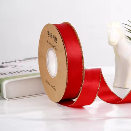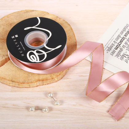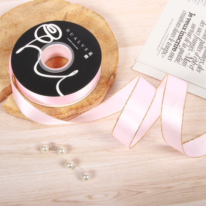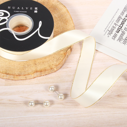 LISTON DE SATIN CON ORILLITA ORO 2.5 CM X 32 MTS