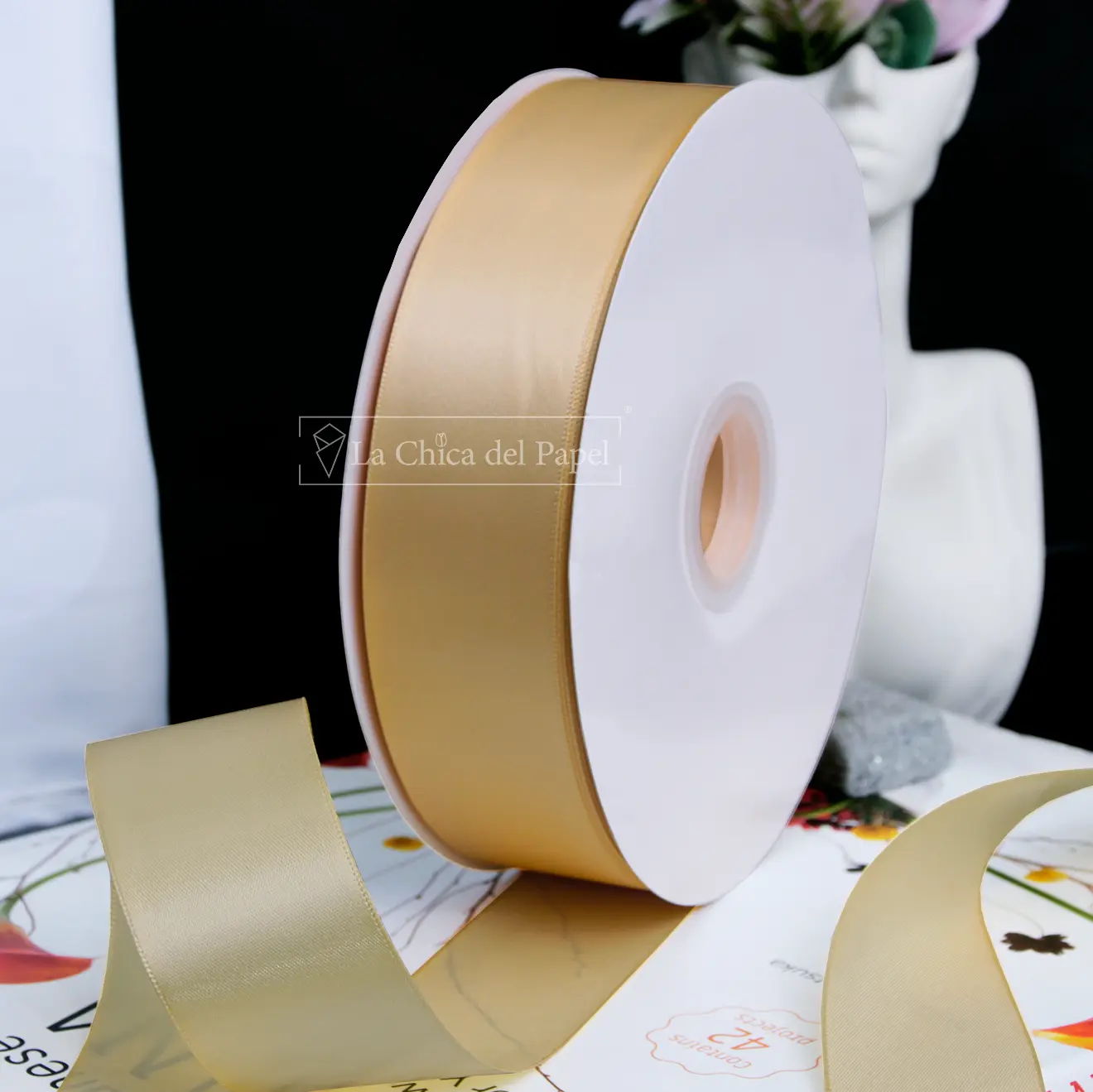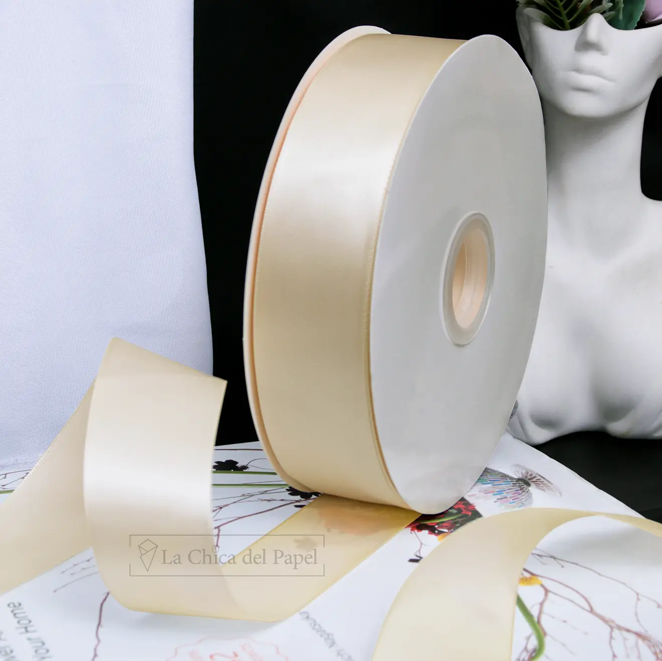 - Listón de satín de alta calidad, elegante