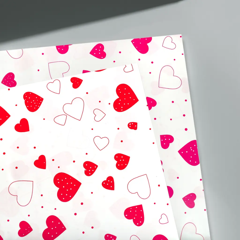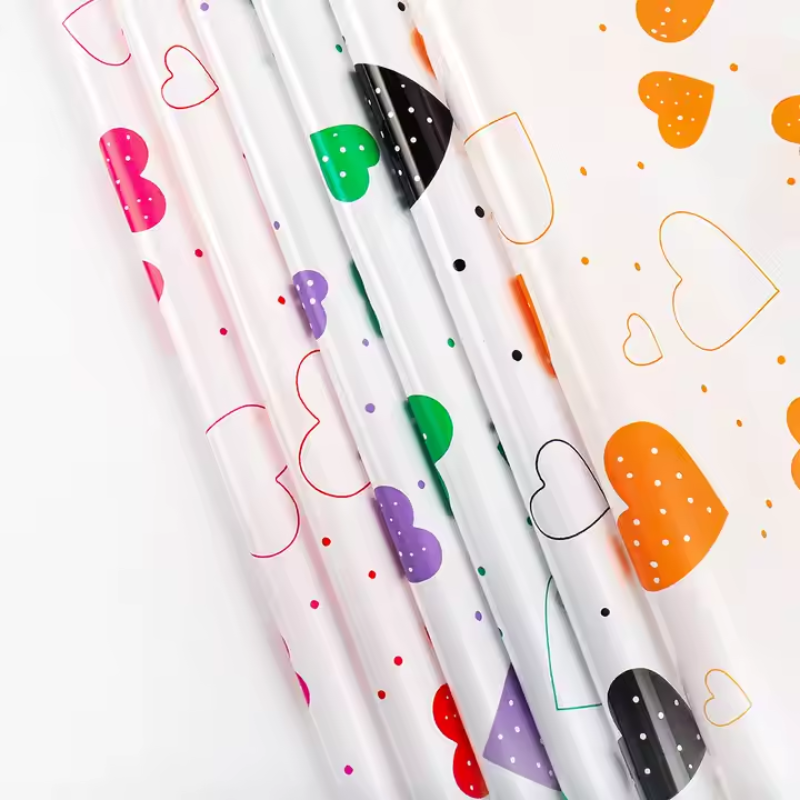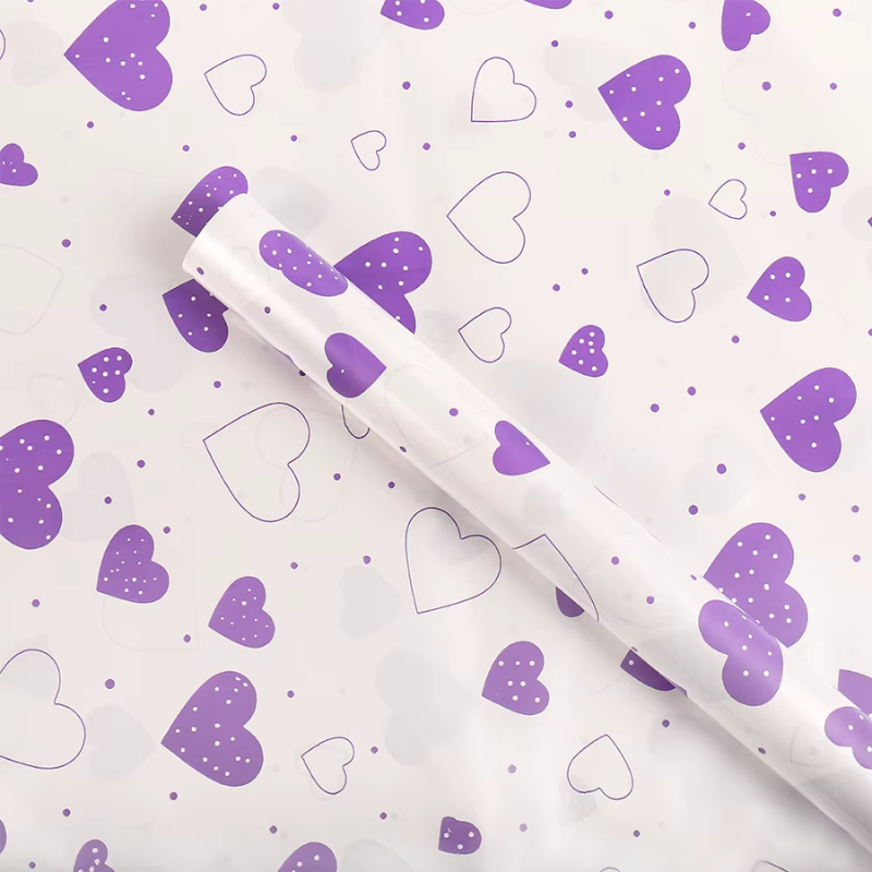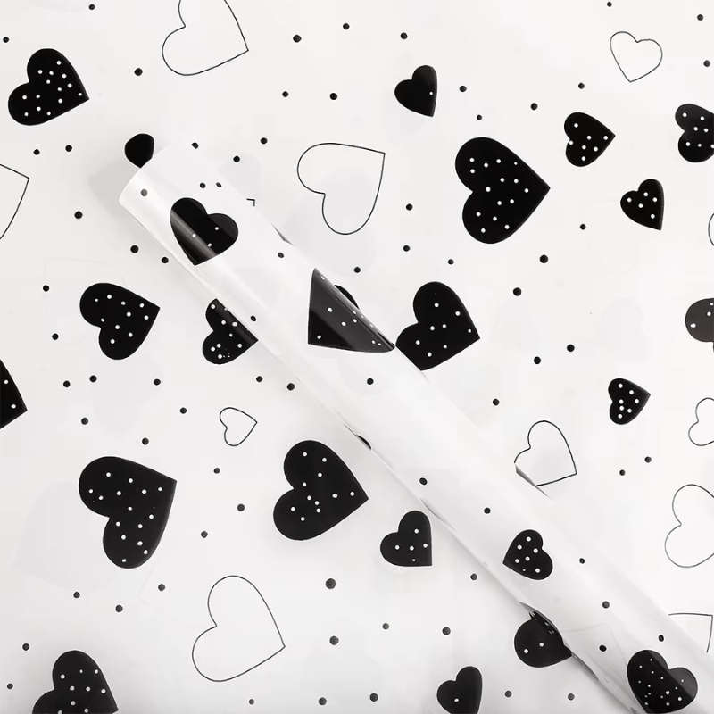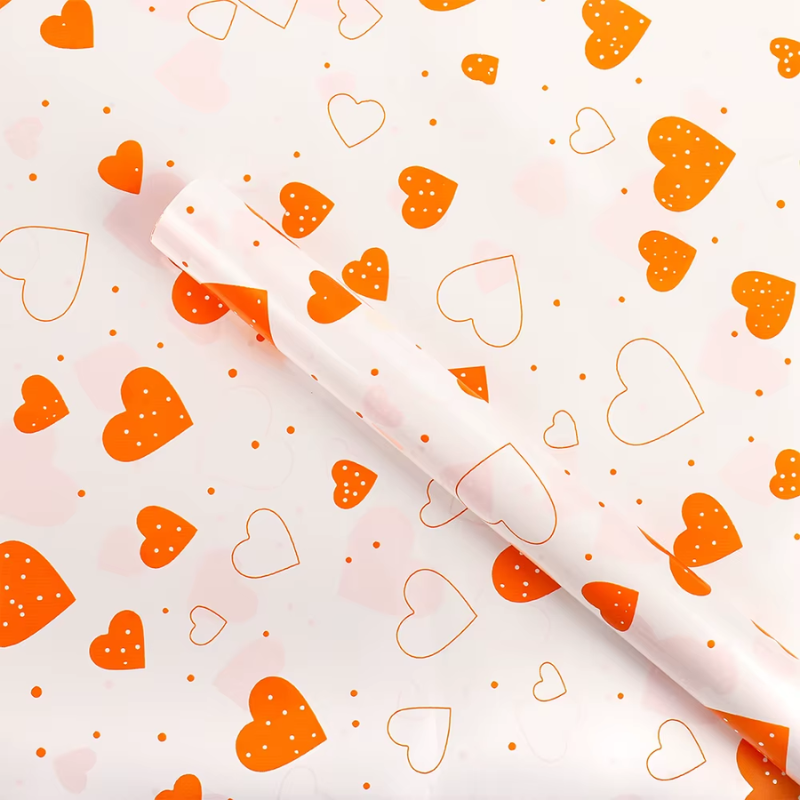 - Celofán coreano con corazones, versátil ideal para envolver flores, regalos y otras manualidades.