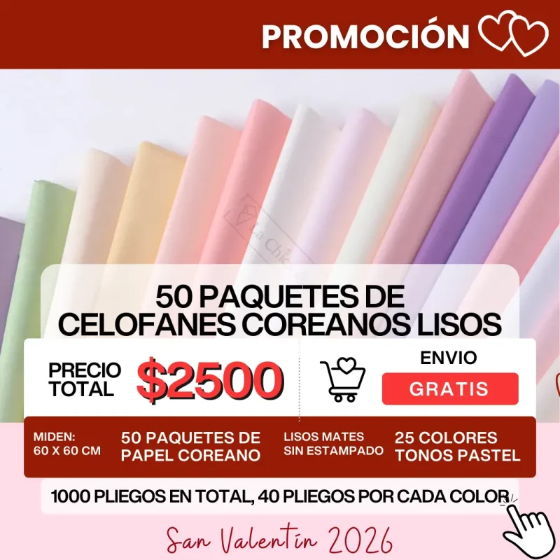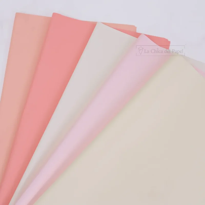 - 1000 pliegos de celofán coreano liso sin estampados (En colores Rositas, beige, blanco, crema, nude, lilas, rojos, etc.)